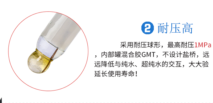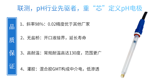 聯(lián)測SIN-pH5100電極使用耐壓半球形pH敏感膜,混合膠GMT構(gòu)成的中介電介質(zhì),Ag/AgCL/KCL外參比體系,無鹽橋(OPEN)開口液接界所構(gòu)成。