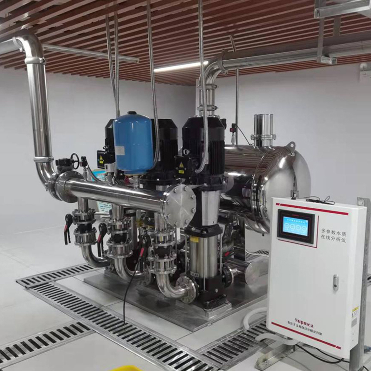 此次提升改造項(xiàng)目采用新型無(wú)負(fù)壓供水系統(tǒng)代替原有以水箱水池蓄水為基礎(chǔ)的二次供水系統(tǒng),對(duì)市政管網(wǎng)居民用水的水質(zhì)監(jiān)測(cè)提出了更高要求。